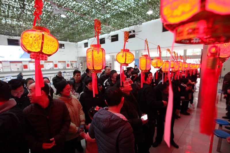 在猜燈謎現(xiàn)場,職工們或來回穿梭瀏覽燈謎,或三五成群的一起商量,或聚精會神地冥思苦想,處處洋溢著濃郁的節(jié)日氣氛。