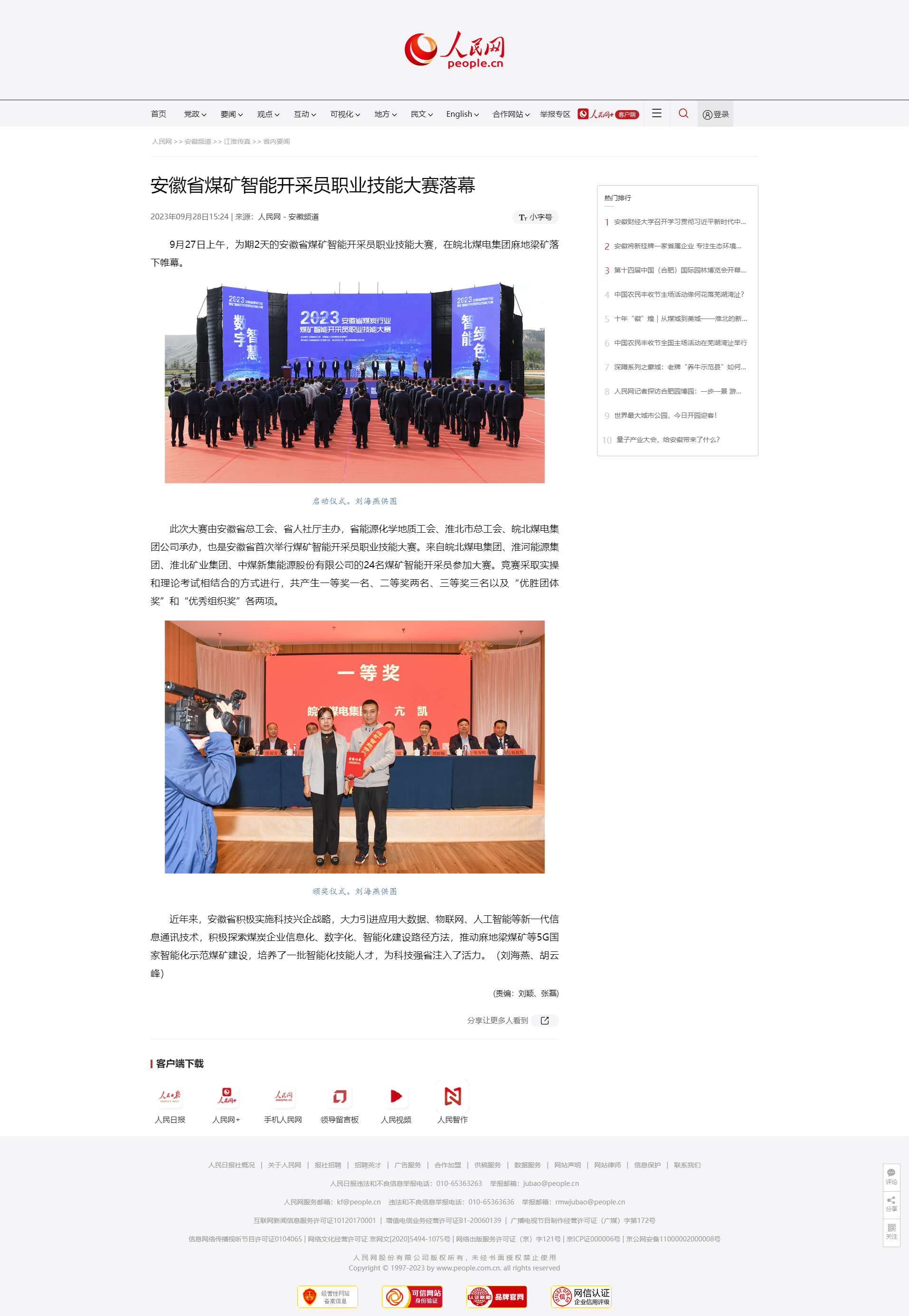 9月28日人民網:安徽省煤礦智能開采員職業(yè)技能大賽落幕