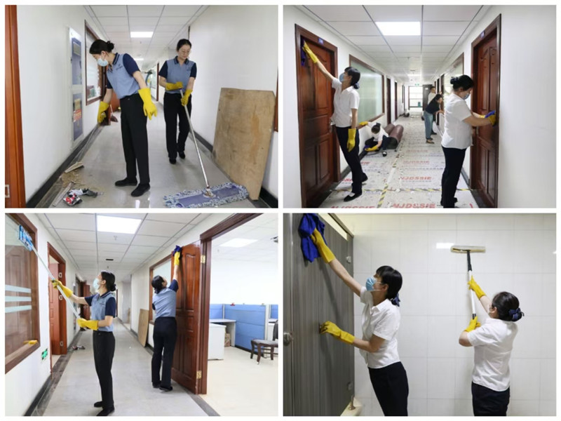 強化責任擔當,主動靠前服務(wù)。集團公司改造工程項目建設(shè)期間,為盡快讓職工恢復正常辦公秩序,機關(guān)分公司組織保潔人員,第一時間對施工完成后交付的樓層進行全方位深度清洗清潔,確保墻面凈、門窗凈、鏡面凈、地面凈,不留盲區(qū)死角,為集團大樓職工提供干凈整潔、舒適溫馨的辦公環(huán)境。
