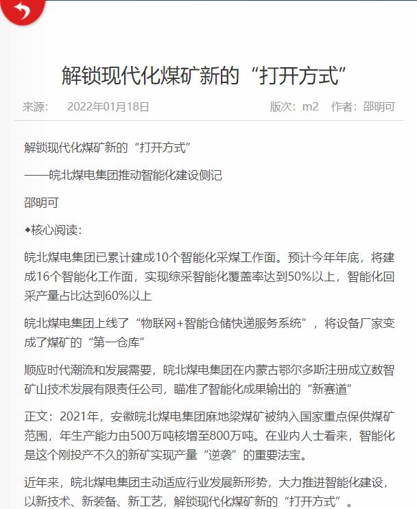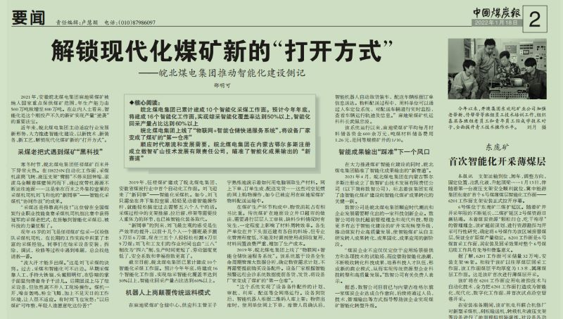 1月18日中國煤炭報(bào)2版頭條:解鎖現(xiàn)代化煤礦新的“打開方式”