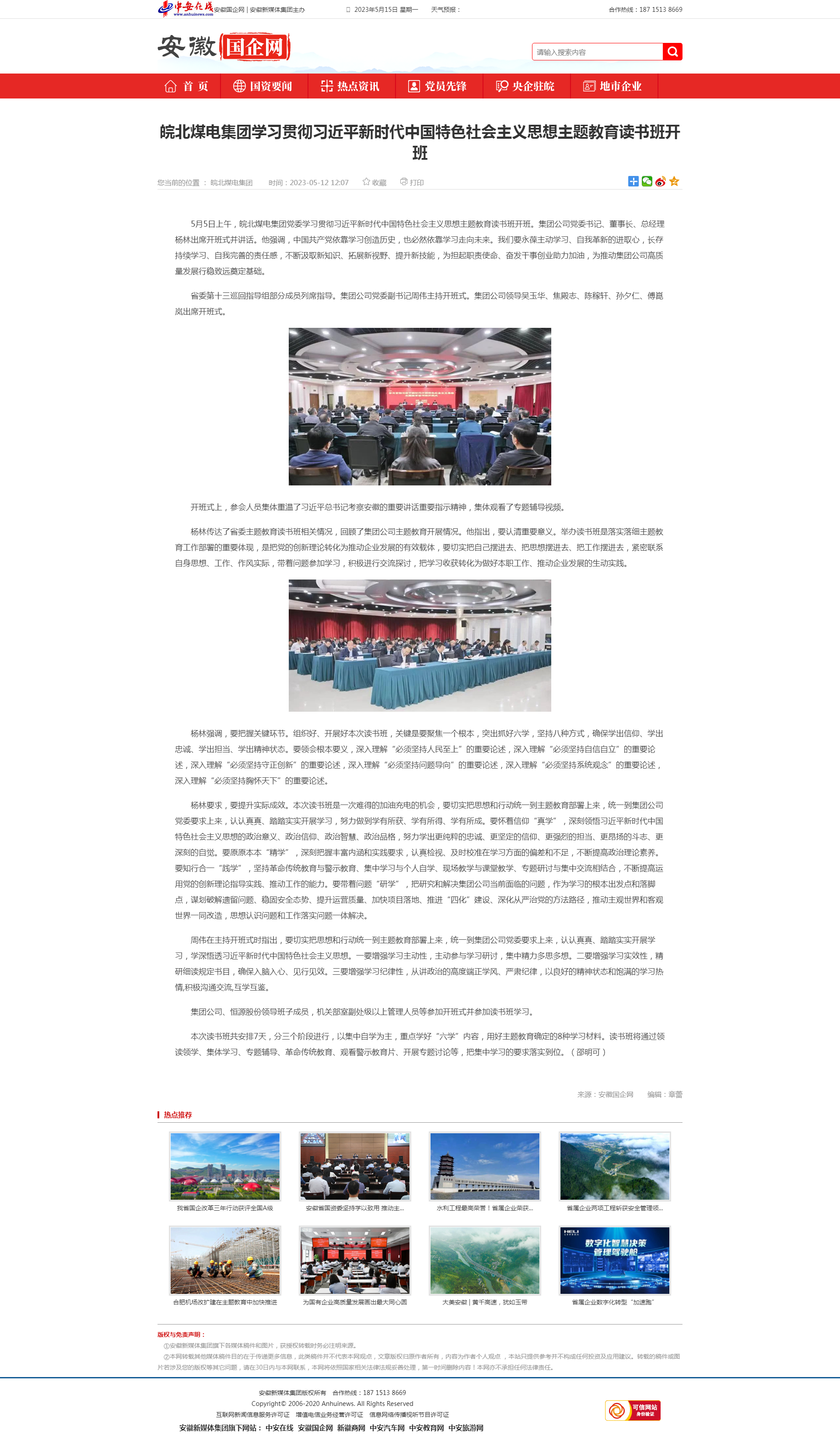 5月12日安徽國企網(wǎng):皖北煤電集團學(xué)習(xí)貫徹習(xí)近平新時代中國特色社會主義思想主題教育讀書班開班
