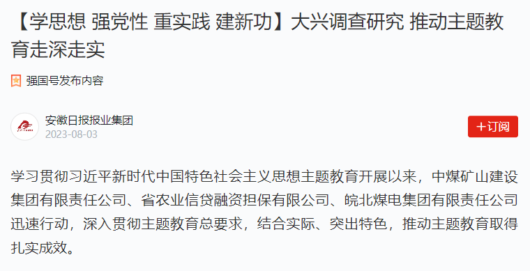 8月3日學(xué)習(xí)強(qiáng)國(guó)安徽頻道:皖北煤電大興調(diào)查研究推動(dòng)主題教育走深走實(shí)