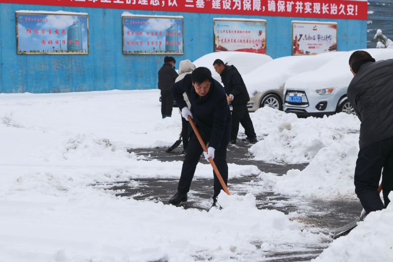 雪后雖然處處是美景,但也給職工出行帶來堵多不便。為了消除積雪帶來的不便和安全隱患,在崗職工自發(fā)拿起鐵鍬、掃帚,清掃礦內道路冰雪。