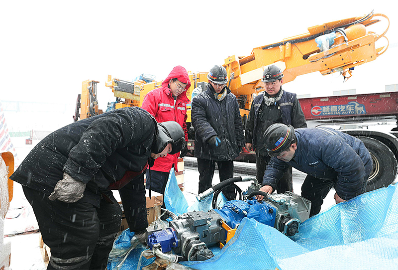圖片說(shuō)明:麻地梁煤礦掘進(jìn)區(qū)第二套掘錨成套裝備裝備頂風(fēng)冒雪進(jìn)場(chǎng),組織精干人員開(kāi)展設(shè)備組裝工作。