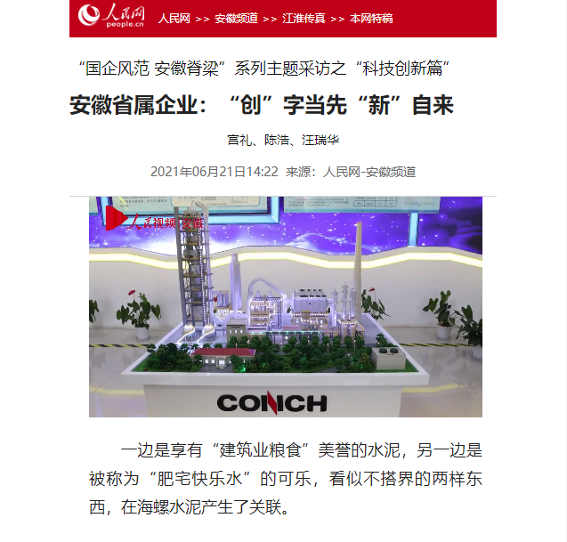 6月21日人民網(wǎng)安徽頻道:安徽省屬企業(yè)“創(chuàng)”字當(dāng)先“新”自來(lái)